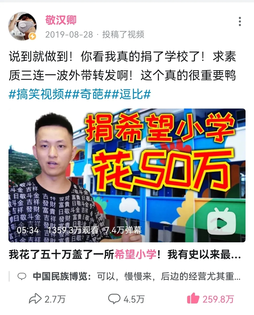 利用流量带来的资本去做善事自然是好的,但是创作出更优质的视频内容,才是获得长期热度的可持续发展策略。