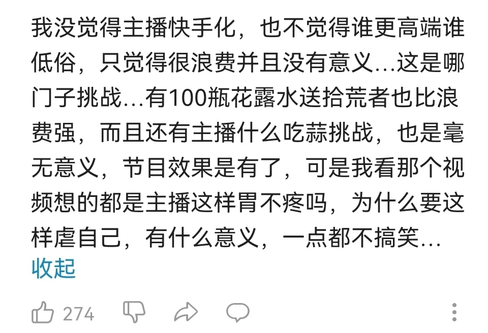 另外还有网友觉得,你怎么作死我管不着,但是浪费食物浪费资源就是你的不对了。