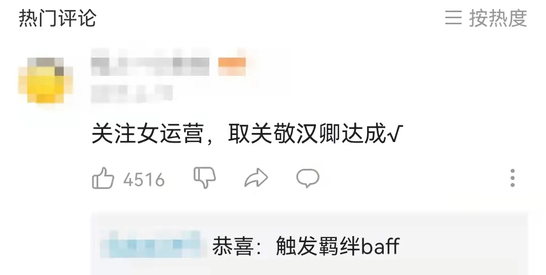 很多敬汉卿的粉丝顺着网线摸过去关注了她,达成成就:关注女运营,取关敬汉卿。