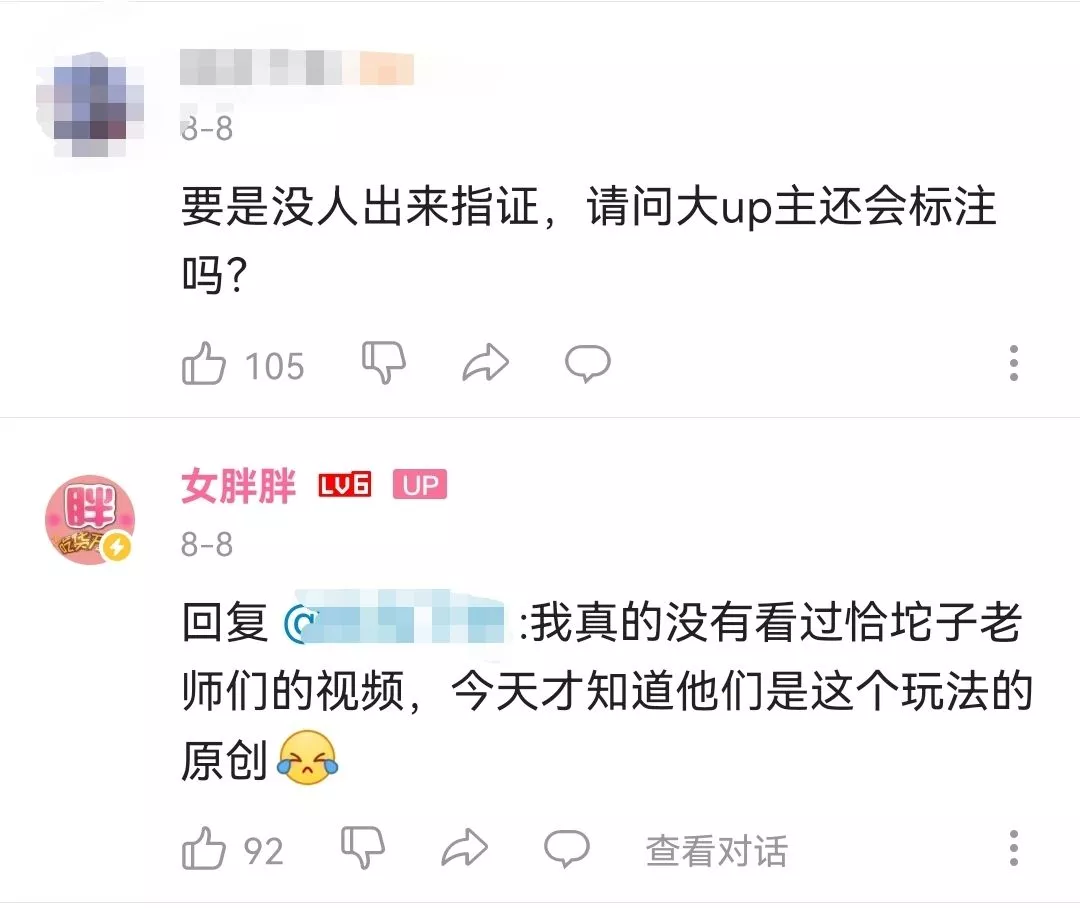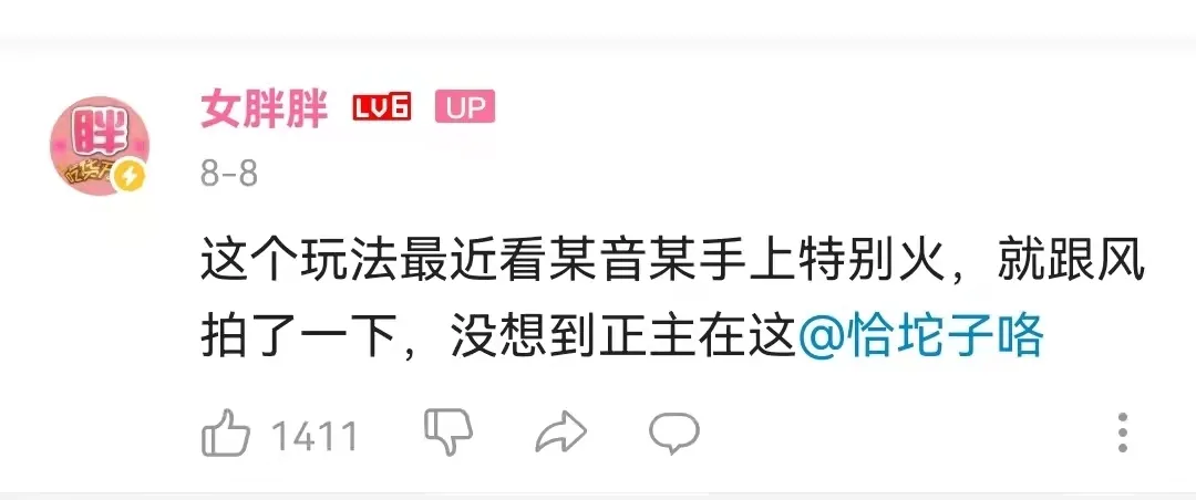 粉丝在评论区提出质疑之后,女胖胖才解释说自己是跟风拍的,并艾特了原创up主。