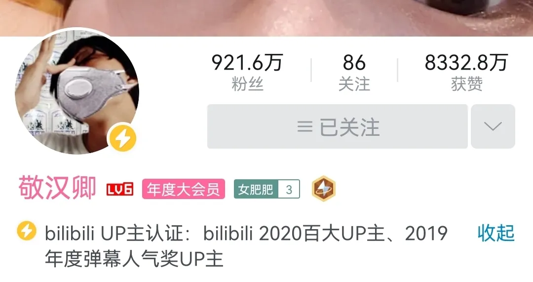 下面我们就来聊聊这对,敬汉卿是B站九百多万粉的up主,流量好到飞起,每个视频的播放量都非常可观。