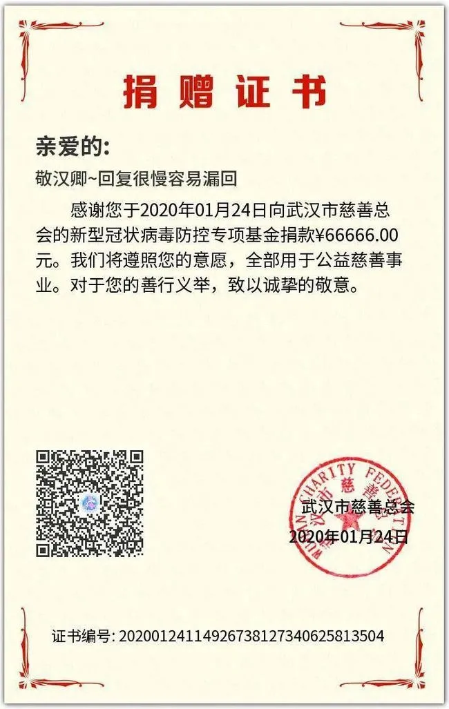 为弥补过失,他为武汉捐赠近6.8万医疗物资和6.66万善款,还退网了一个多月面壁思过。