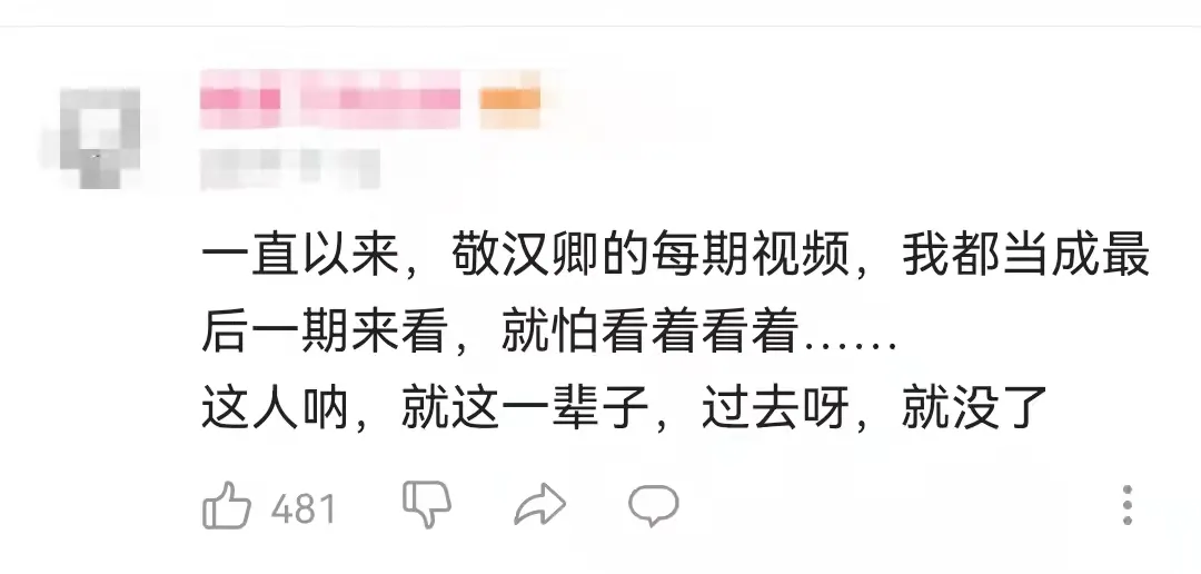 敬汉卿,他满足观众猎奇心理的同时也会引起观感不适,很多网友在看敬汉卿的视频时都是地铁老头看手机的表情,为什么要这么虐待自己?有什么意义?